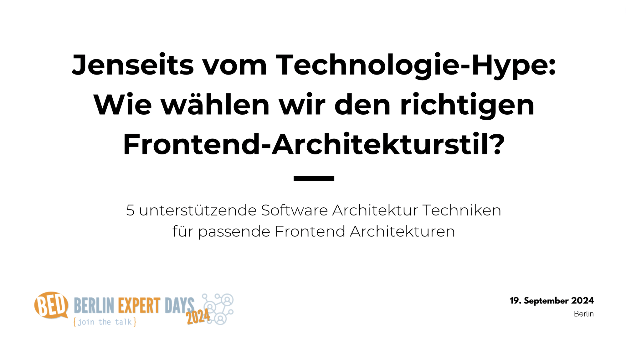 Slides und weitere Informatione zum BED-Con 24 Talk: “Jenseits vom Technologie-Hype: Wie wählen wir den richtigen Frontend-Architekturstil?”