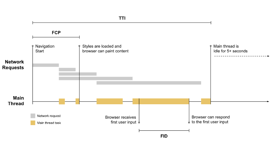The Time To Interactive (TTI) is from when the web app starts loading to when its sub resources have loaded and it is capable of reliably responding to user input quickly.