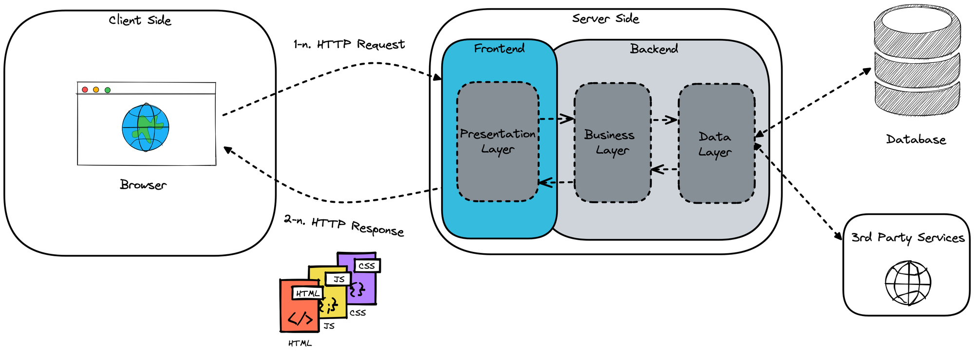 With the server rendering technique, the frontend is rendered entirely on the server side