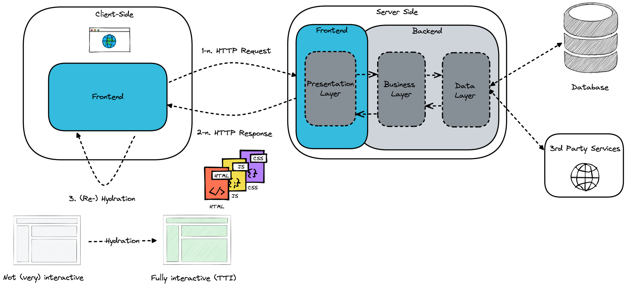 Universal Rendering or Server-Side Rendering (SSR) with (Re-) Hydration