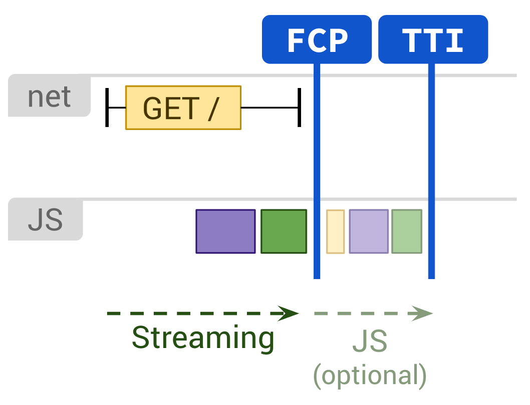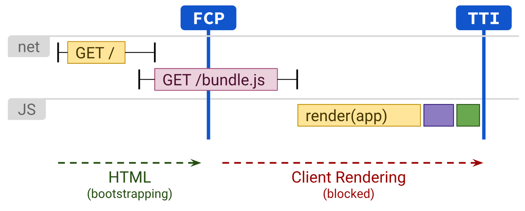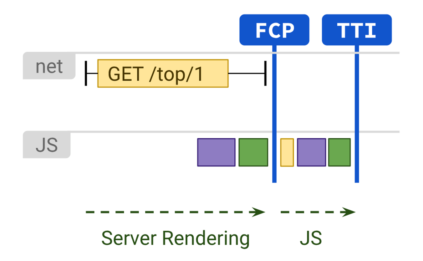 - Increased server load and potential performance issues due to rendering on the server (delta between the FCP and TTI).