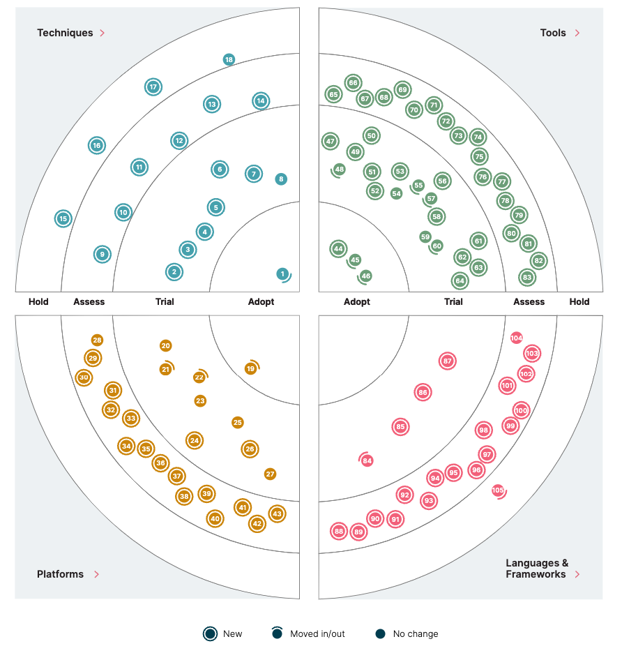 It visualizes technologies in four categories: Adopt, Try, Assess and Hold. This helps stakeholders understand which technologies are recommended for adoption, which need further research and which should be avoided.