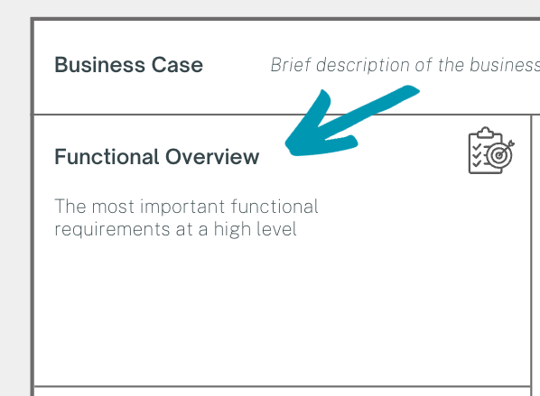 As you work out the functional overview of the software initiative as a product team, imagine a product box of your software - what is on your software box?
