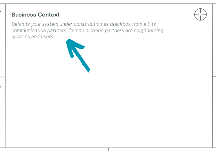 In this part, you're to create a business-oriented context view to get a common view of the business scope of the system. So focus on a common understanding and use this part to develop a tool to communicate the system context to other stakeholders inside and outside the team.