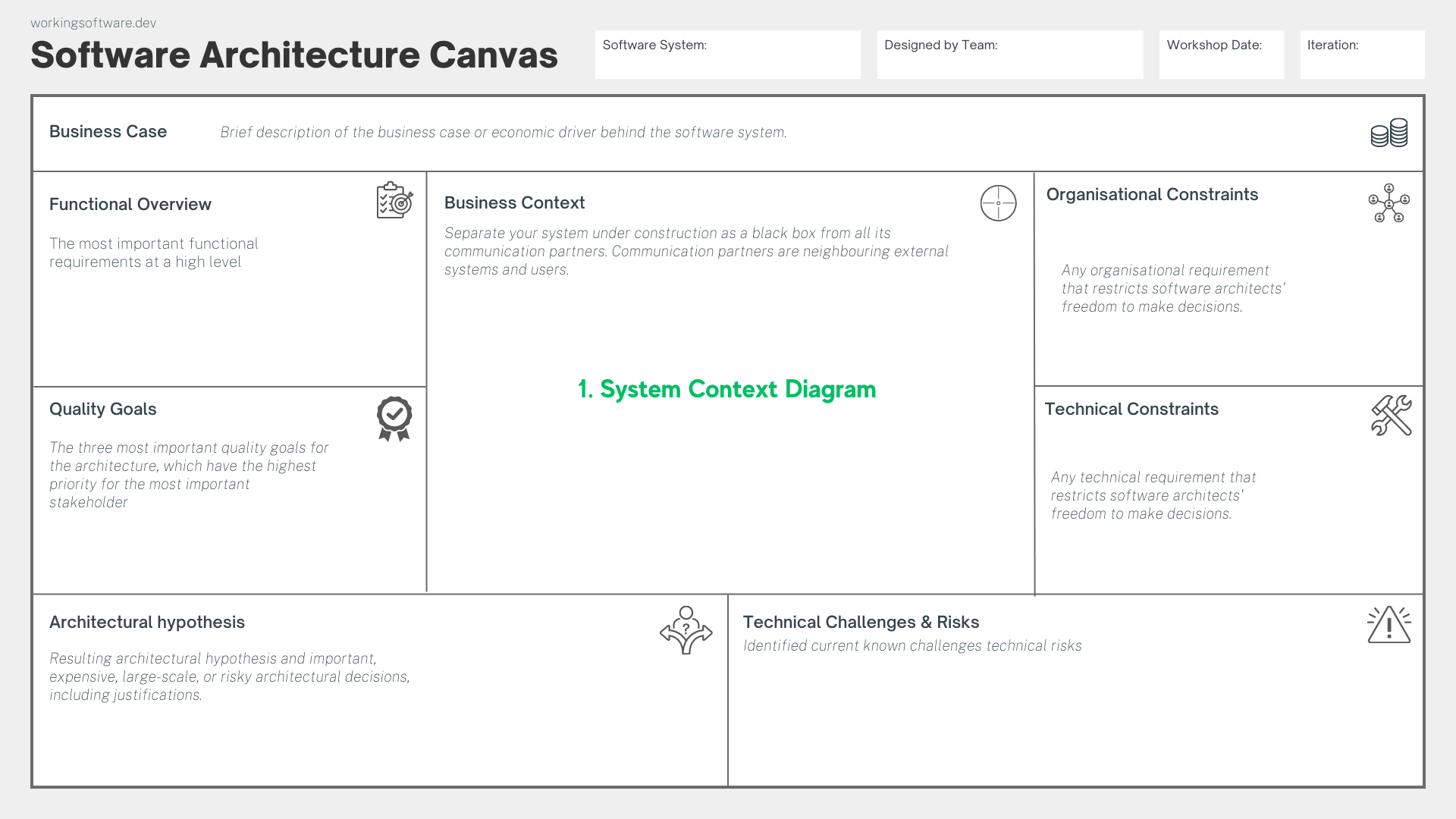 On the following page you can download the Software Architecture Canvas in high resolution.